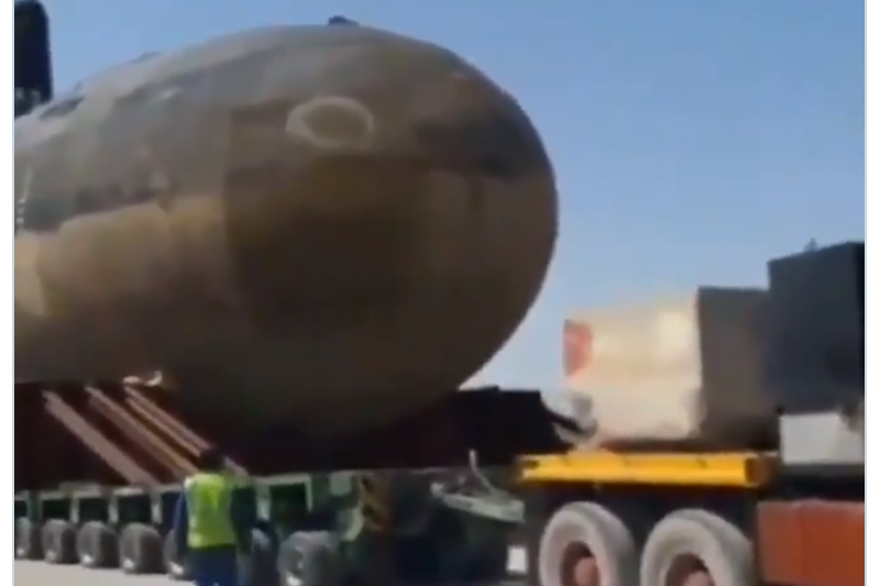 Nem mindennapi szállítmányról kerültek fel videók, Iránban egy katonai tengeralattjárót szállítottak szárazföldön.
